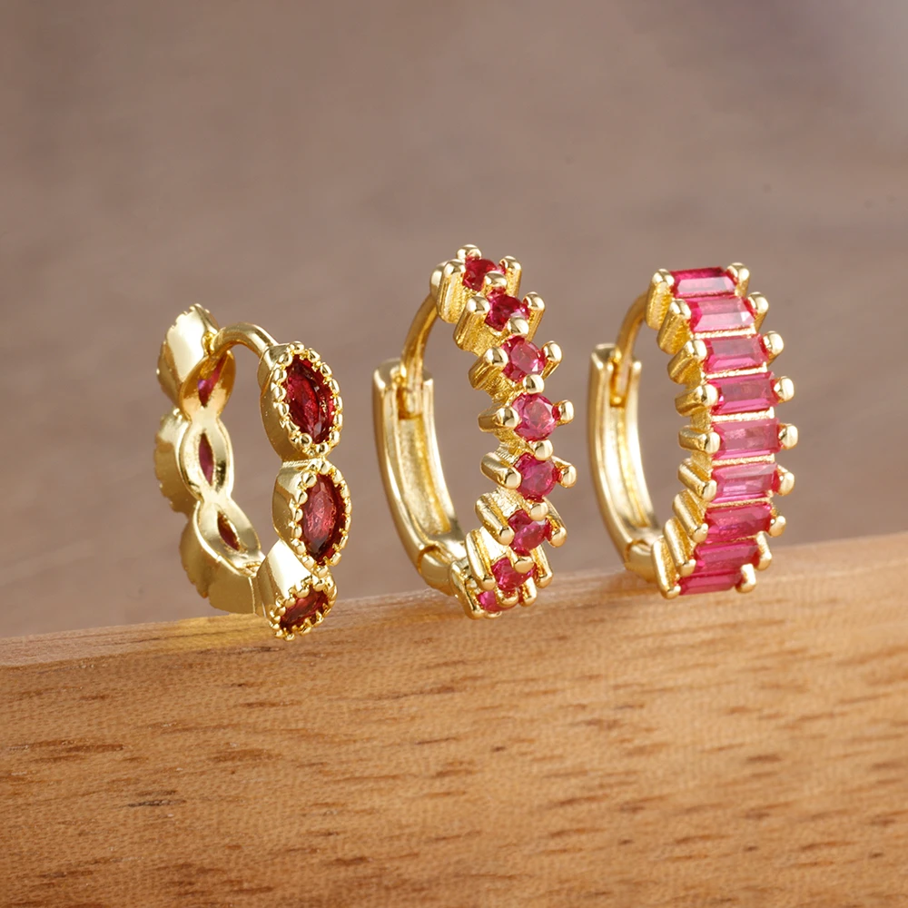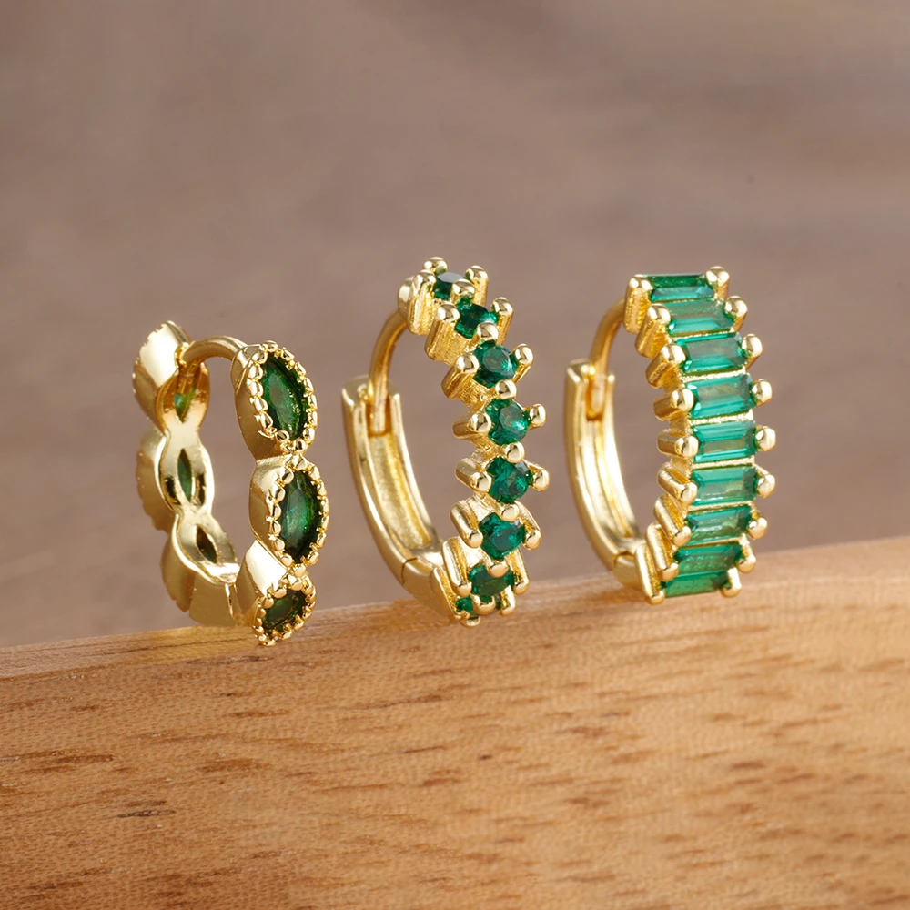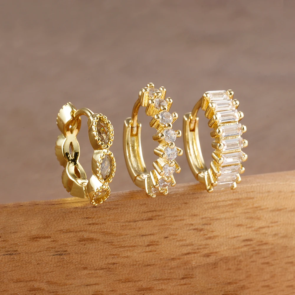✨ Lot de 3 boucles d’oreilles créoles petites et délicates en acier inoxydable – Zircon “œil de cheval”, rondes, style huggie, mode pour femmes✨