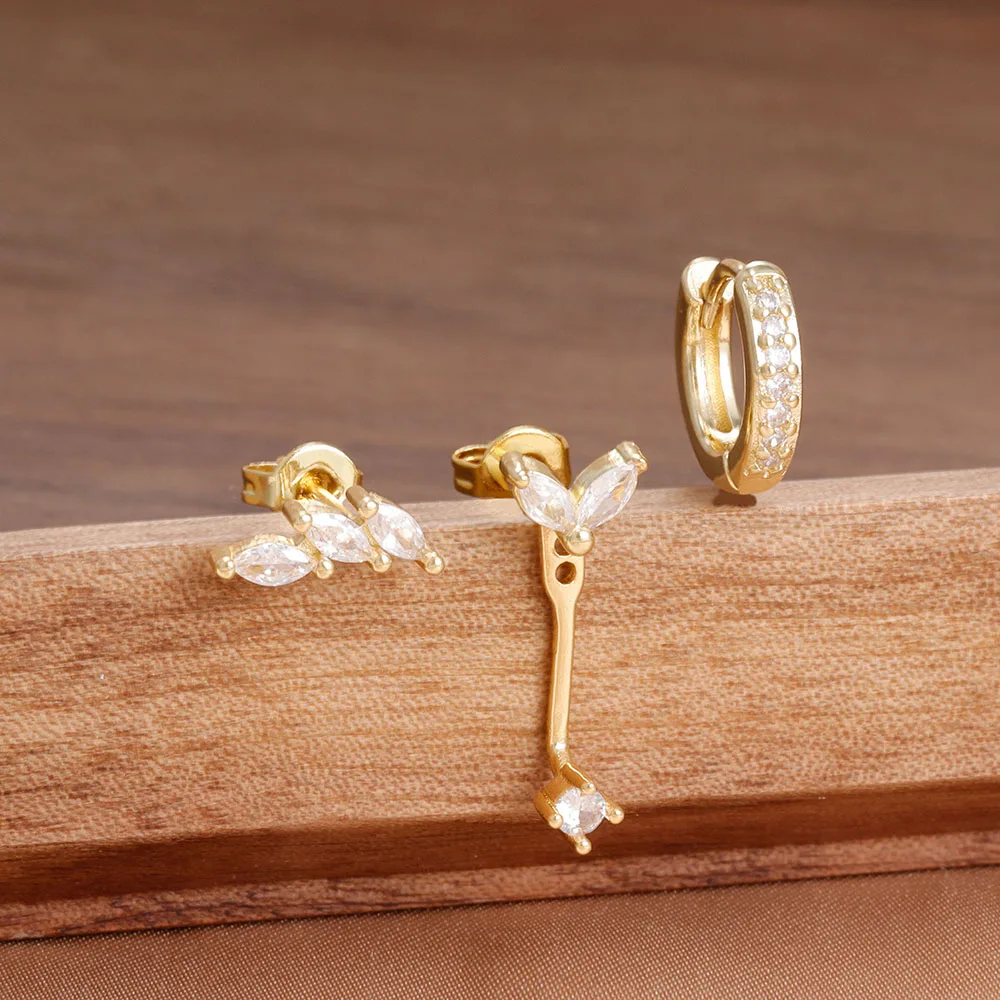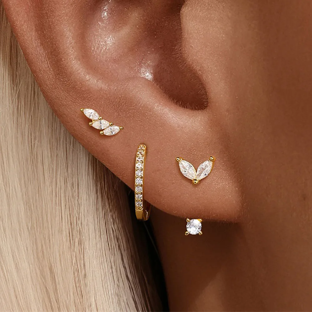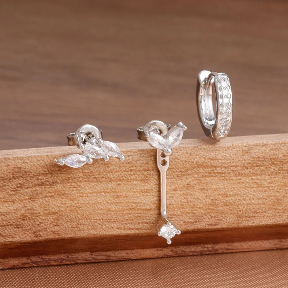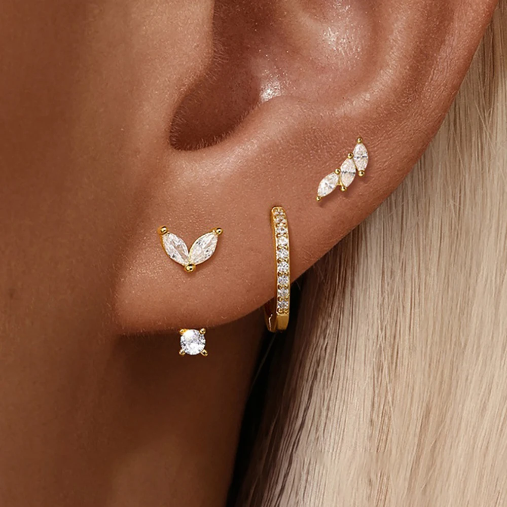 ✨ Lot de 3 paires de boucles d’oreilles clous en zircon – Acier inoxydable – Style unique punk rock unisexe✨